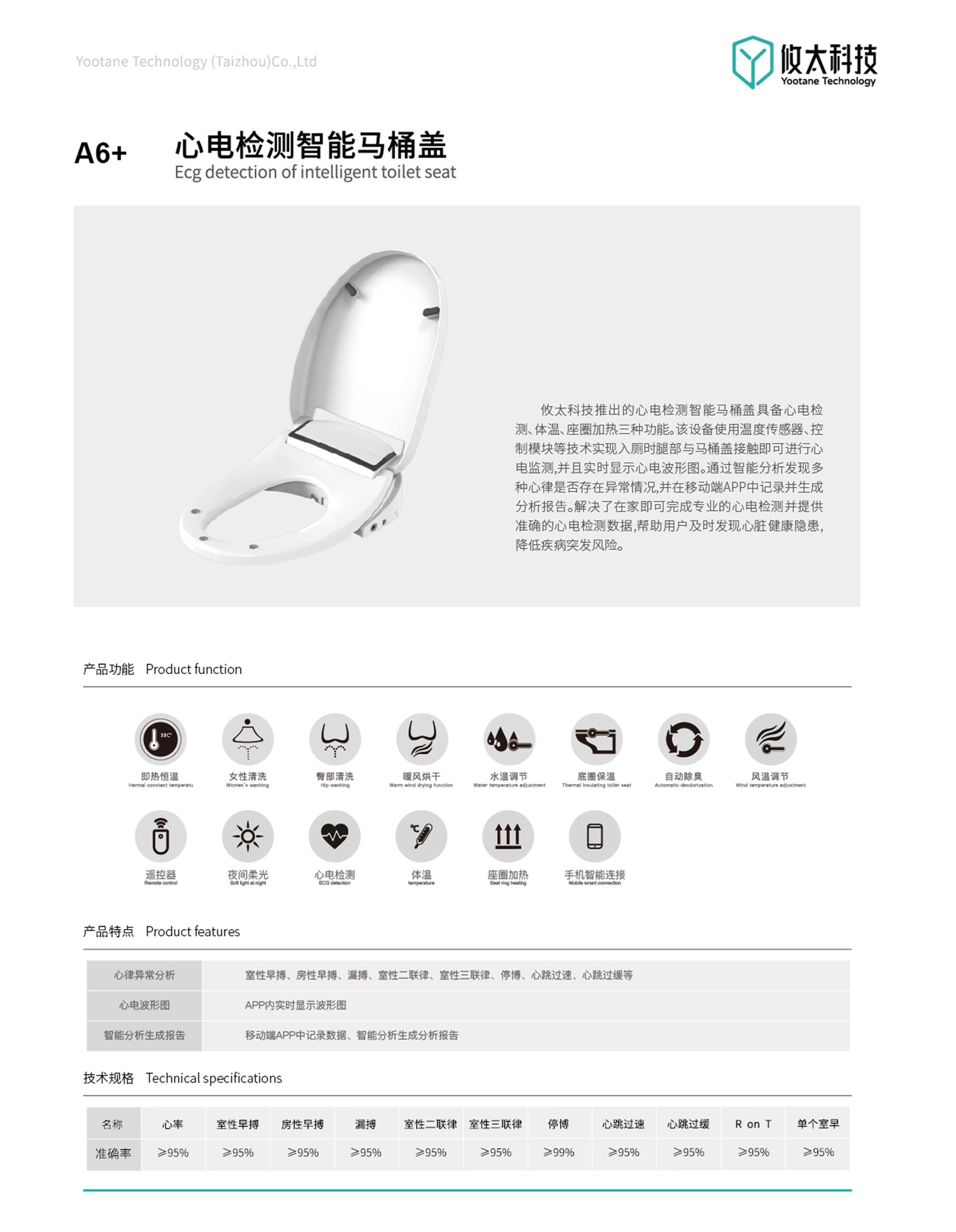 攸太科技推出的心電檢測智能馬桶蓋具備心電檢測、體溫、座圈加熱三種功能。該設備使用溫度傳感器、控制模塊等技術實現入廁時腿部與馬桶蓋接觸即可進行心電監測,并且實時顯示心電波形圖。